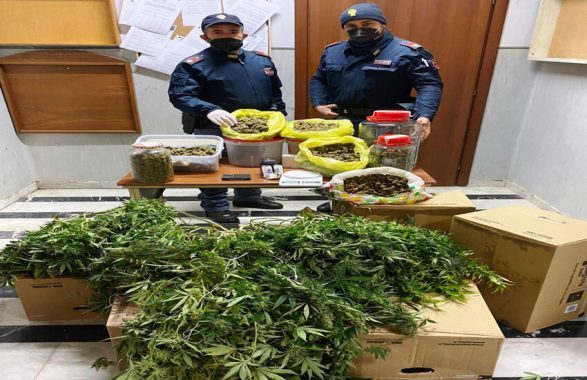 Gli operatori hanno rinvenuto nell’appartamento 9 piante di marijuana del peso complessivo di 12 kg, 8 contenitori con 3 kg della stessa sostanza già essiccata, 3 pezzi di hashish del peso di circa 250 grammi, 2 bilancini di precisione e 3040 euro; hanno