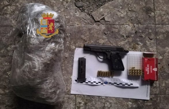 Stamattina gli agenti del Commissariato Vicaria-Mercato hanno effettuato un controllo in uno stabile di vico Grazie a Sopramuro ed hanno rinvenuto, all’interno di un appartamento in stato di abbandono, una pistola cal. 7,65 con 23 cartucce dello stesso calibro e una busta con 1026,16 grammi circa di marijuana che sono state sequestrate.