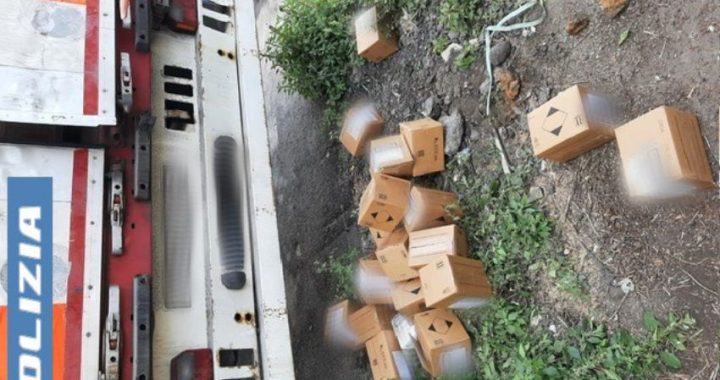 Al contempo gli operatori hanno notato che gli altri due soggetti erano posizionati a ridosso del portellone posteriore di un semirimorchio, intenti a prelevare dal suo interno diversi colli di cartone, dei quali circa una ventina, contenenti merci varie, sono stati ritrovati successivamente sul selciato.
