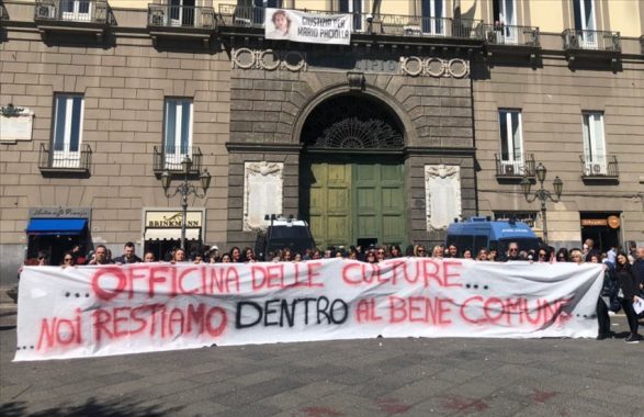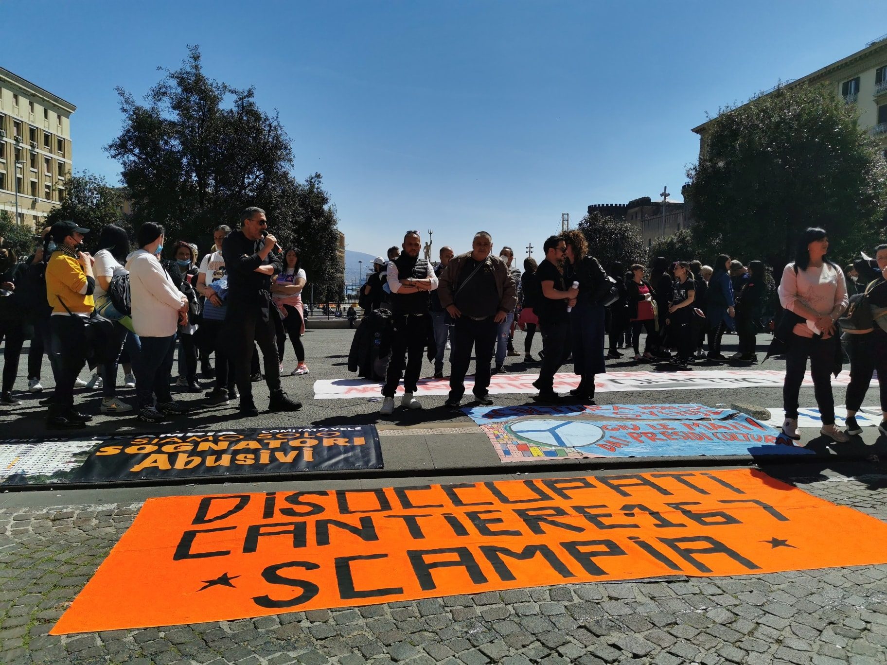 In mattinata si è svolto un presidio promosso da varie realtà popolari del territorio a partire da alcune associazioni presenti in “Officina delle Culture” di Scampia, il centro popolare GRIDAS, Il Cantiere 167 Scampia, i disoccupati del Cantiere 167 Scampia, sostenuti da alcuni centri sociali del centro di Napoli DAMM e LO SCARRUPATO.