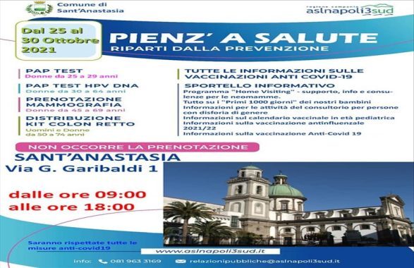 Il sindaco di Sant’Anastasta, Carmine Esposito, ha annunciato che il comune aderirà all’iniziativa di prevenzione con visite e controlli per la popolazione. Lo stesso sindaco spiega le modalità di partecipazione sul suo profilo Facebook: “Cari e care concittadini/e oggi si è tenuta nell’aula consiliare la conferenza stampa per annunciarvi che da lunedì 25 ottobre e fino a sabato 30, dalle ore 10 alle 18, si terrà la settimana di prevenzione del tumore al seno del nostro Comune!