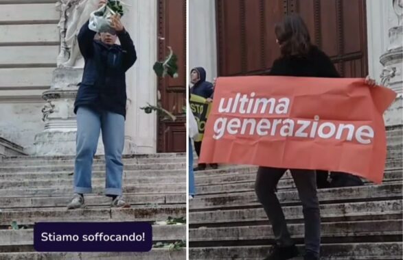 Ultima Generazione è nota per le sue azioni ad alto impatto mediatico. Tra gli episodi recenti si ricordano la protesta a Torino contro gli allevamenti intensivi e quella a Roma, davanti al Bulgari Hotel, dove furono sparsi scarti di verdura per denunciare il divario sociale ed economico. Immagine di repertorio