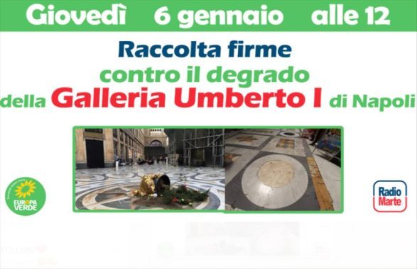 Giovedì 6 gennaio alle 12 iniziativa di Europa Verde e La Radiazza contro il degrado della Galleria Umberto I di Napoli. “Vogliamo l’installazione dei cancelli per tutelare ciò che è un patrimonio della città ed una grande risorsa per il turismo”.