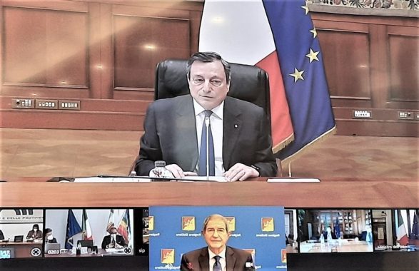 Il presidente della Regione Siciliana Nello Musumeci, nel corso del suo intervento durante la Conferenza unificata Stato-Regioni sul Recovery plan con la presenza del Premier Mario Draghi e la partecipazione di numerosi ministri e dei rappresentanti di Anci (Comuni) e Upi (Province) ha dichiarato: “Ho contestato il ritardo con il quale le Regioni sono state coinvolte nel confronto con il governo centrale per l’utilizzo dei fondi del Recovery plan, nel metodo e nel merito. Non ci si aspetti dai governatori del Sud una condotta approntata a sterile rivendicazionismo, un atteggiamento da piagnoni lamentosi e accattoni“…“Vero è che il sistema Italia è diviso in due poli, ma l’uno ha bisogno dell’altro e senza infrastrutture materiali e immateriali si condannano i territori del Meridione alla povertà”