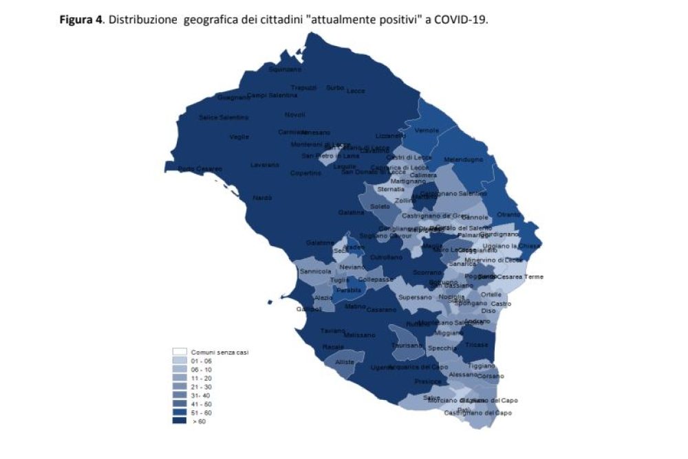 Il report Covid Asl Lecce evidenzia la distribuzione dei casi Comune per Comune, il numero dei degenti, dei ricoveri e dei decessi con la distinzione per genere ed età e l’incidenza settimanale per 100mila abitanti. Non ci sono in questo momento comuni salentini a zero contagi. Nel Salento per quanto riguarda il numero di attuali positivi troviamo al primo posto la città di Lecce con un aumento da 1.283 a 2.578 residenti positivi al virus. Al secondo posto, ecco Copertino, di cui abbiamo già ampiamente parlato, che passa da 582 a 1.086 contagiati a causa di diversi focolai esplosi nell’ultimo mese. Per numero di positivi spicca anche Nardò, dove si registra un altro boom di casi: da 351 a 715 in una settimana. Salgono vorticosamente i contagi anche Surbo, dove sono passati da 282 a 626. A Galatina si passa da 351 a 521 positivi. Allarme anche a Veglie passa da 246 a 585 positivi. Leverano schizza a quota 483 (erano 162). Registra anche il numero dei cittadini residenti vaccinati, distribuiti in base al Comune di residenza e per fasce di età. Dall’inizio della campagna vaccinale sono 1.504.194 le dosi di vaccino somministrate a cittadini residenti in provincia di Lecce, di cui 623.870 prime dosi, 586.229 seconde dosi, 21.333 monodose e 272.762 terze dosi.