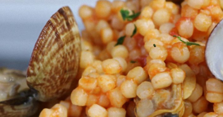 A questo punto si prepara il soffritto, possibilmente in un tegame di coccio, dove si versa un bicchiere di olio extra vergine di oliva e gli spicchi di aglio interi, chiaramente ripuliti dalla camicia. Una volta che l’aglio si è dorato, si estrae dalla pentola e si aggiungono due cucchiai di pomodoro. Per poi rimestare ben, finché la salsina venga tutta intrisa con l’olio. Successivamente si versa nel tegame un gran bicchiere di acqua calda, insieme al liquido delle arselle precedentemente colato. Appena bolla, si uniscono le mezze arselle preparate, una manciata di prezzemolo tritato e per finire sei cucchiai di fregula. Si fa cuocere il tutto per circa sette minuti, per poi servire la fregula in una scodella, guarnita con le arselle intere lasciate da parte precedentemente. Buon appetito da Nonna Itala.