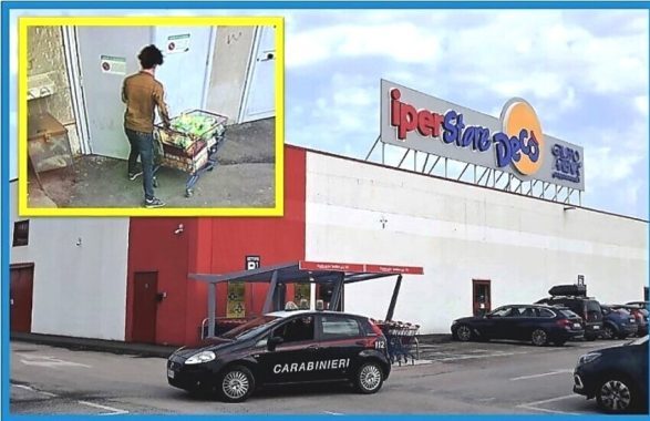 Ormai esaurito lo spazio disponibile il giovane ha quindi forzato la porta di sicurezza dei locali, provocando però l’immediata reazione del personale di vigilanza che, comunque, si era già avveduto del suo strano comportamento ed aveva già avvisato i Carabinieri. Il contestuale arrivo dei militari ha posto fine al tentativo di furto della merce che è stata restituita al responsabile del supermercato, mentre il giovane, espletate le formalità di rito, è stato posto agli arresti domiciliari.