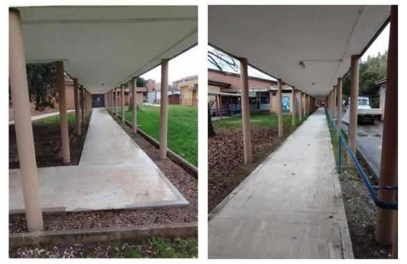 Si sono conclusi oggi i lavori di messa in sicurezza dei camminamenti esterni della scuola di via Quarto, parte integrante dell’Istituto Frezzotti-Corradini. Gli interventi si erano resi necessari a causa del deterioramento delle strutture, che aveva portato alla chiusura dei percorsi coperti alla fine di ottobre scorso.