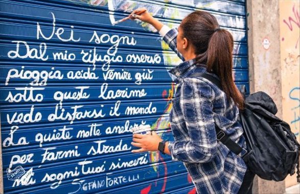 “La poesia è generatrice di bellezza. Con L’associazione la portiamo per strada, dipingiamo saracinesche e panchine in luoghi degradati allo scopo di smuovere le coscienze e di riportare attenzione su luoghi degradati e abbandonati. La poesia è la voce del popolo”.
