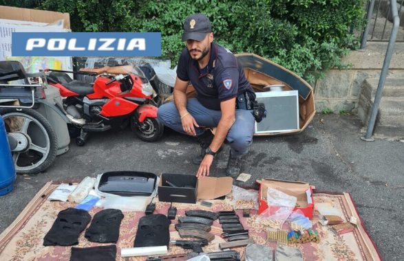 La capillare perlustrazione del territorio ha consentito di scovare un garage pieno di armi e munizioni, nascoste, per non destare particolari sospetti, tra mobili, suppellettili e oggetti vari accatastati all’interno del box. Ma il mini arsenale non è sfuggito ai poliziotti che hanno trovato un kalashnikov, una pistola calibro 9×21 con matricola abrasa, quattro caricatori calibro 7,62 con 45 proiettili, altri due caricatori 7,62 vuoti, nove caricatori di vario calibro, anch’essi privi di proiettili, e ben 337 cartucce sfuse di vario calibro.
