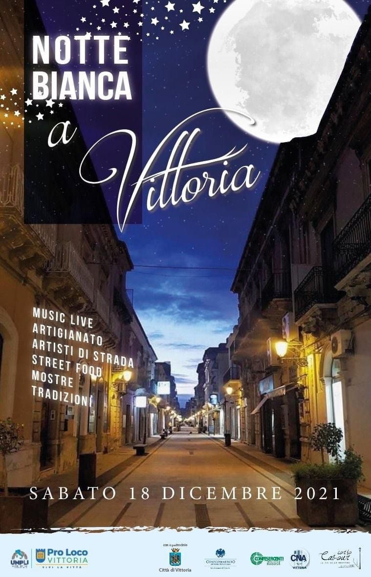 Torna la notte bianca a Vittoria, un’occasione per godere di allegria, shopping, aria di festa per le vie del centro anche nelle ore serali. Tra musica live, artigianato, artisti di strada, street food, mostre, esaltazione delle tradizioni, si cercherà di vivere in spensieratezza qualche ora di questo ennesimo Natale difficile.