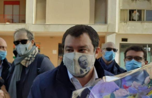 «5 Stelle e PD oggi mi criticano perfino sulla mascherina che indosso? Sono davvero allo sbando… La lotta anti-mafia dovrebbe unire tutti, non dividere. Se qualcuno a sinistra fa polemica anche su una figura eroica come quella di Paolo Borsellino e sulla lotta alla mafia, è fuori dal mondo e dalla storia», afferma Salvini sulla sua pagina Facebook. L’ex ministro dell’Interno è a Palermo perché sabato 9 gennaio è prevista l’udienza preliminare per il caso dell’Ong “Open Arms” e si stabilirà dunque, nell’aula bunker dell’Ucciardone, se ci sarà il processo per sequestro di persona e rifiuto d’atti d’ufficio.