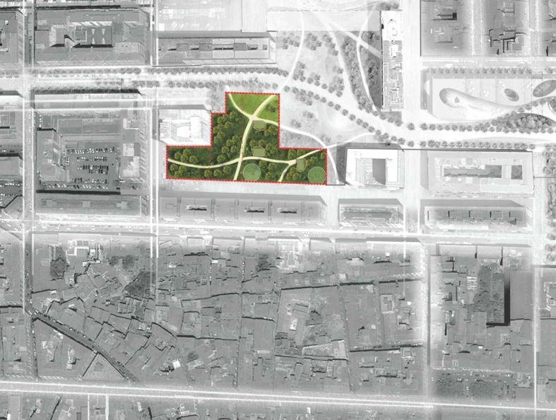 Il parcheggio interrato multipiano, a tre livelli, avrà una superficie complessiva interna di 10.900 mq; il corrispondente verde attrezzato di 7.895 mq, un vero e proprio nuovo parco cittadino, dovrà essere realizzato secondo innovativi sistemi di valorizzazione ambientale e tutela della sostenibilità