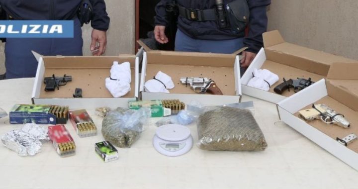 Nel corso del controllo, i poliziotti hanno rinvenuto – ben occultati – un revolver cal. 38 special, una pistola semiautomatica cal. 6.35 con matricola punzonata, una pistola semiautomatica dal calibro allo stato non rilevabile con matricola abrasa e un revolver cal. 22 con matricola abrasa. Insieme alle armi, gli agenti hanno inoltre recuperato numerose munizioni di vario calibro e due buste in cellophane contenenti marijuana per un peso di 441 grammi.