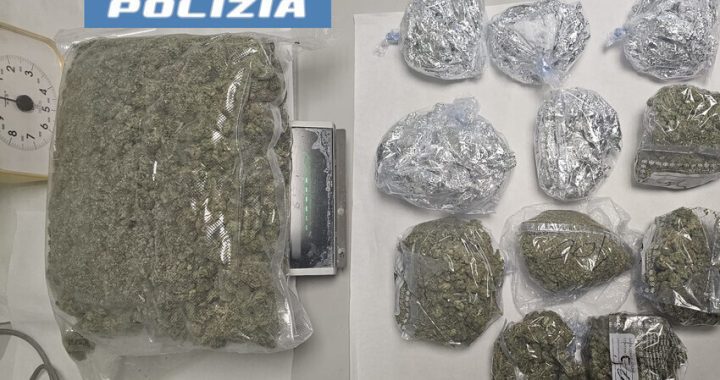 Infatti, all’interno dell’abitazione, i poliziotti hanno rinvenuto 12 involucri in plastica trasparente con all’interno della sostanza stupefacente del tipo marijuana per un peso complessivo pari a 1,666 kg.