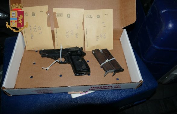 I successivi accertamenti hanno consentito di recuperare anche l’arma utilizzata, abbandonata durante la fuga del pregiudicato in un terreno poco distante, consistente in una pistola beretta calibro 7.65 con caricatore rifornito di tre proiettili e matricola abrasa (arma clandestina).