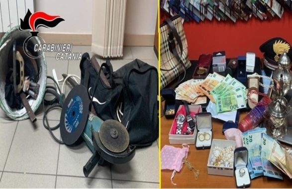 I militari hanno perquisito l’autovettura trovando nel bagagliaio una smerigliatrice con disco per il taglio del metallo, altri attrezzi da lavoro e, soprattutto, quello che rappresenterebbe il bottino dell’ultimo loro colpo: orologi e monili per oltre 15 mila euro, nonché la somma di 4600 euro in contanti.