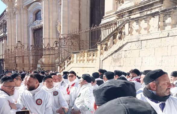 L’intervento si è comunque concluso e non sembrano esserci stati danni a persone. Intanto la processione del fercolo è giunta in via Crociferi per il canto delle suore di clausura.