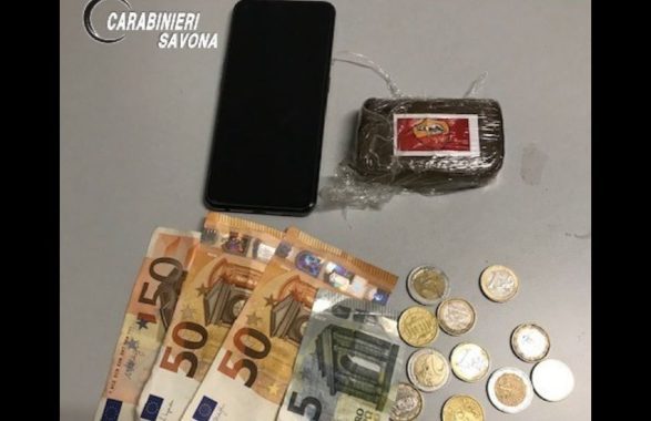 La pattuglia dei Carabinieri dopo avere preso in consegna il giovane, costato il suo forte stato di agitazione approfondivano i controlli, trovandolo in possesso di 100 gr. di hashish destinato alla “movida savonese”, nonché 170,00 € in contanti quale provento dallo spaccio di stupefacente e un telefono cellulare per gestire i “clienti”, procedendo al loro sequestro.