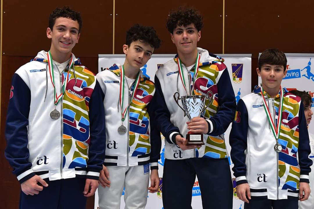 Continua a essere foriero di grandi risultati il movimento giovanile della scherma cusina. A Bolzano, in occasione del campionato nazionale a squadre under 14, Lorenzo Alberghina, Gabriele Giovita, Matteo Santangelo e Simone Zappalà portano a casa la medaglia d’argento arrendendosi solo in finale al Circolo della scherma Anzio e non riuscendo, solo per poco, a bissare il successo che il Cus aveva ottenuto l’anno scorso con la squadra formata da Castro, Di Stefano, Marinetti e Sinatra. Resta però la grande prestazione e la convinzione che al Cus si stia formando una vera fucina di giovani talenti della scherma.