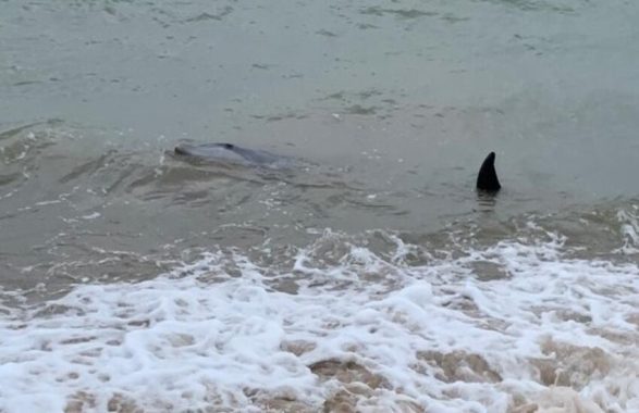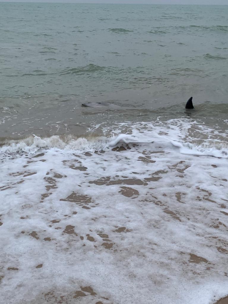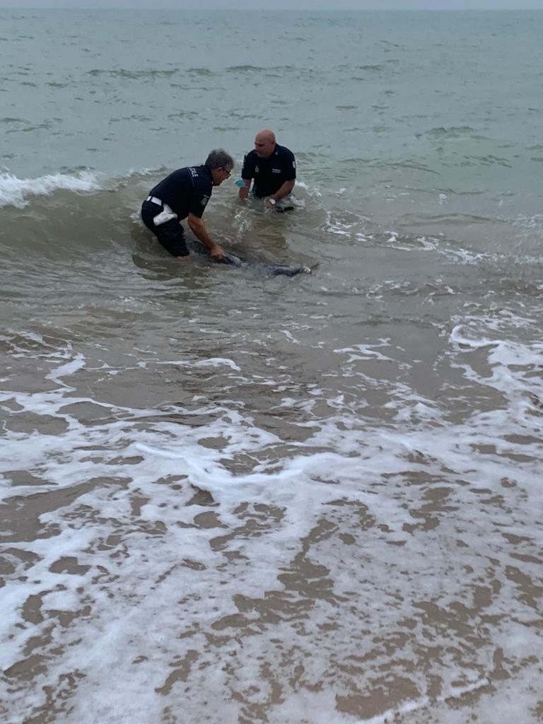 Oggi pomeriggio alcuni agenti della polizia municipale di Vittoria, nucleo di pg, hanno tratto in salvo un grande delfino sulla spiaggia di Kamarina. Sul posto i vigili urbani di Vittoria.