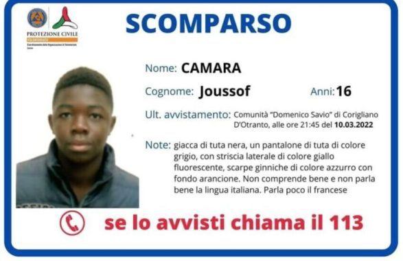 Dopo i due casi avvenuti a cavallo tra la fine del 2021 e l’inizio del 2022 e dal tragico epilogo, ancora una misteriosa scomparsa nel Salento. Sono ore d’angoscia per un 16enne di cui non si ha alcuna notizia da ieri sera, quando è sparito dalla comunità nella quale risiedeva. Si tratta di Jousof Camara che, intorno alle 21.45 di ieri sera si sarebbe allontanato, senza fare più rientro, dalla struttura educativa “Domenico Savio” di Corigliano d’Otranto. Il ragazzino parla poco il francese, ma non comprende nemmeno bene l’italiano, di cui conosce a malapena qualche parola.