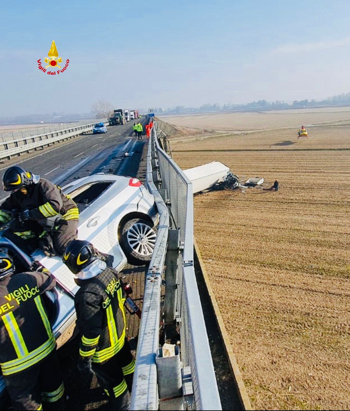 Sono ancora in corso gli accertamenti al vaglio degli inquirenti dell’incidente mortale che ha coinvolto un’utilitaria Ford che si è scontrata frontalmente con un camion. Il grave sinistro ha portato al decesso del conducente dell’autovettura, mentre il TIR è precipitato dal ponte dopo aver sfondato il parapetto, finendo la corsa nei campi sottostanti: l’autista del mezzo pesante è stato sbalzato fuori dalla cabina e trasportato all’ospedale dell’elisoccorso.