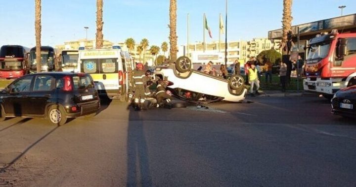 Scontro tra auto, conducente vettura ribaltata in ospedale