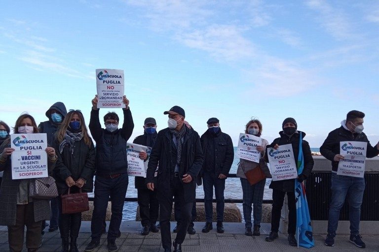 Una protesta per dire No alla scuola come servizio a domanda, No ad ulteriori responsabilità per i dirigenti scolastici, No alla scuola dell’infanzia in presenza (di nuovo colpevolmente dimenticata dall’ordinanza), e No alla Didattica Digitale Integrata. Quella che la Uil Scuola Puglia chiede per le scuole pugliesi sono presidi sanitari nelle scuole, potenziamento dei trasporti e vaccini per il personale scolastico. Gianni Verga, segretario generale di Uil Scuola Puglia, che in mattinata ha guidato la protesta del sindacato sul lungomare barese, si esprime così sul significato della protesta per le scuole pugliesi: “Le nostre richieste erano chiare e trasmettevano il grido di allarme che ci perviene dal personale scolastico tutto, ma prima il Governo e poi la Regione di fatto ci riportano al periodo prenatalizio, a fronte di contagi quasi raddoppiati. Basta con la scuola su richiesta -ha detto- una soluzione che sta creando confusione e disagi non solo alle scuole, ma anche a tante famiglie. Per ritornare alla didattica in presenza occorrono misure di accompagnamento, che al momento non ci sono. Verga ha concluso invitando la Regione “a usare il buonsenso e a non perseverare in decisioni che si stanno rivelando inadeguate a tutelare studenti e lavoratori della scuola”.