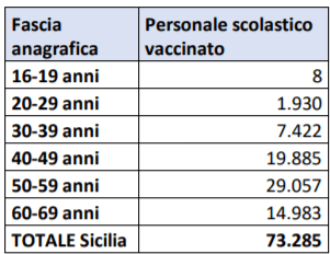 In ultimo il dato sulla vaccinazione del personale scolastico.