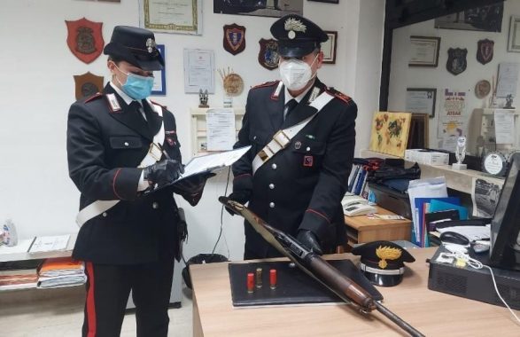 “L’uomo, a seguito di perquisizione personale e domiciliare – si legge nel comunicato diffuso dal comando provinciale – veniva trovato in possesso di un fucile marca Franchi cal.12 con matricola bascula e canna abrase e 3 cartucce cal.12, occultati all’interno di un ricovero per attrezzi. le armi e le munizioni sono state sottoposte a sequestro”.