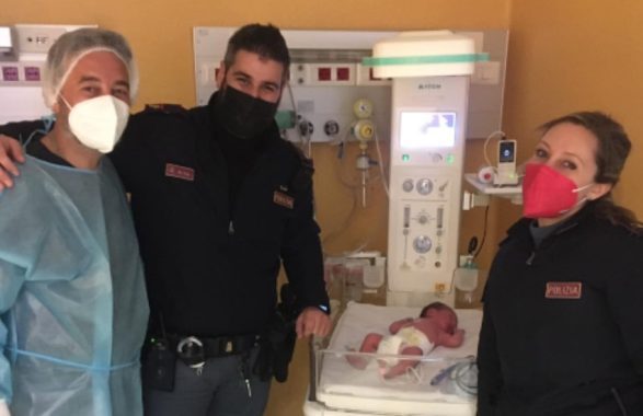 Ma non erano soli… due poliziotti in servizio di controllo del territorio si sono assicurati che il parto avvenisse in sicurezza e poi, quando Alessandro è venuto alla luce, hanno accompagnato la neo famiglia al vicino Ospedale a sirene spiegate e con la strada aperta da tutte le pattuglie di zona.