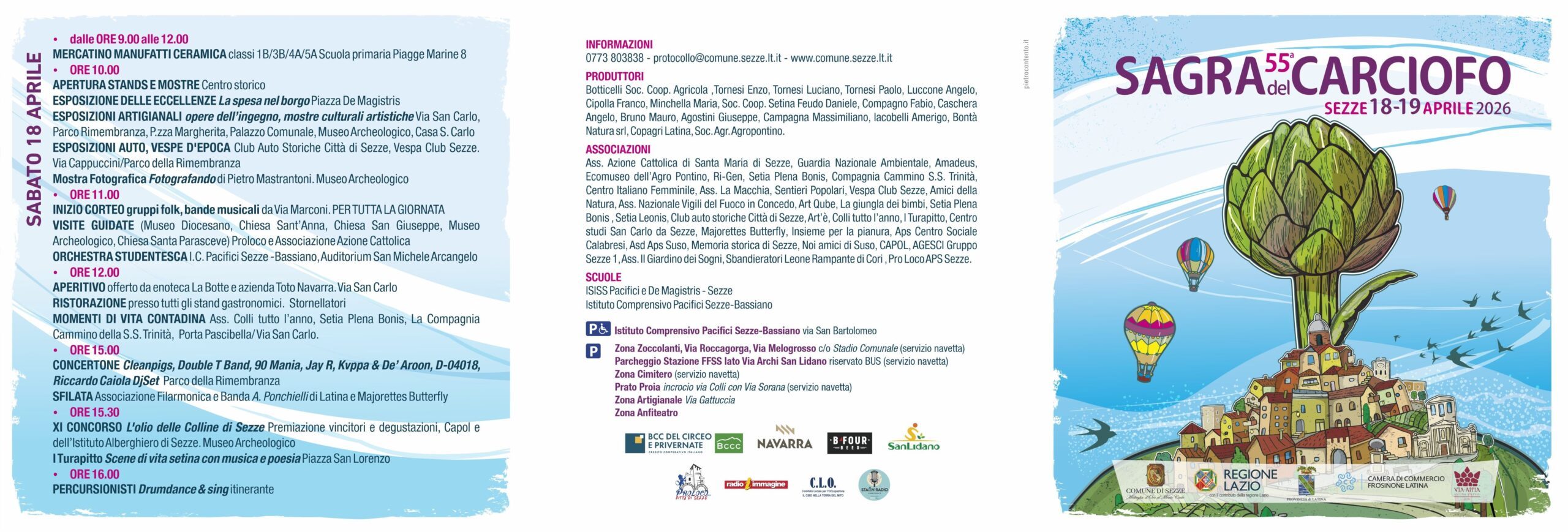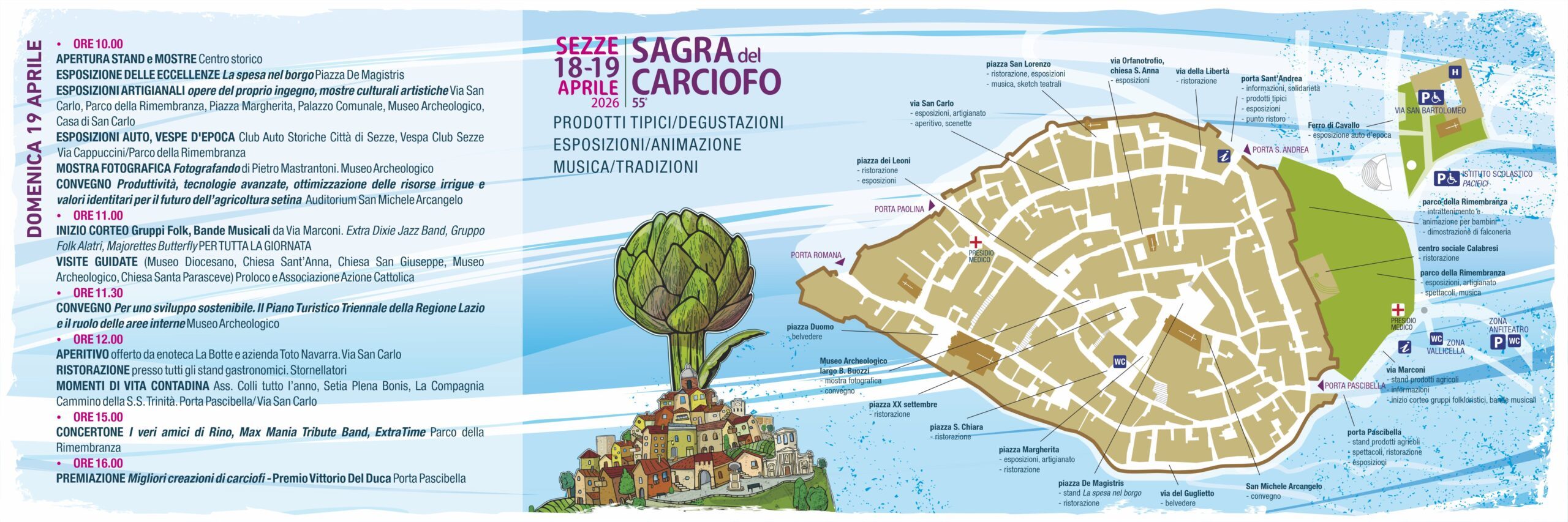 Tutto pronto a Sezze per la 55ª edizione della Sagra del Carciofo, uno degli appuntamenti più attesi del territorio, in programma sabato 18 e domenica 19 aprile 2026. Una manifestazione storica che, anno dopo anno, continua a crescere, confermandosi tra gli eventi enogastronomici più rilevanti del Lazio.