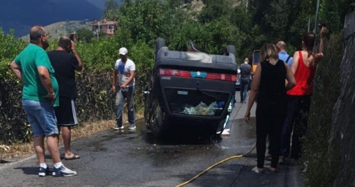 Un incidente stradale, banale, con un’auto ribaltata al centro della carreggiata in via Colli.