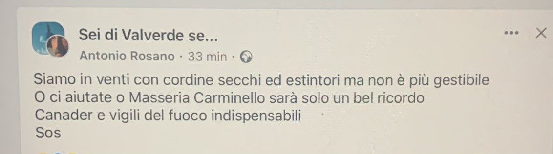 La gente lancia disperati appelli anche sul web, così come sta avvenendo da Valverde.