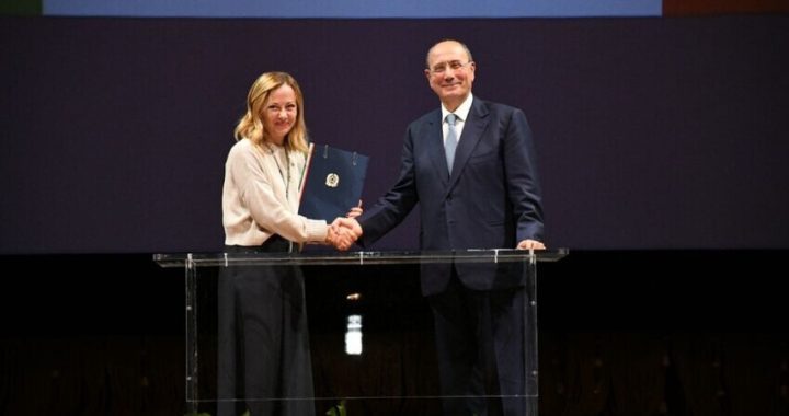 La firma dell’accordo al Teatro Massimo di Palermo tra la premier Meloni e il presidente della Regione Schifani.