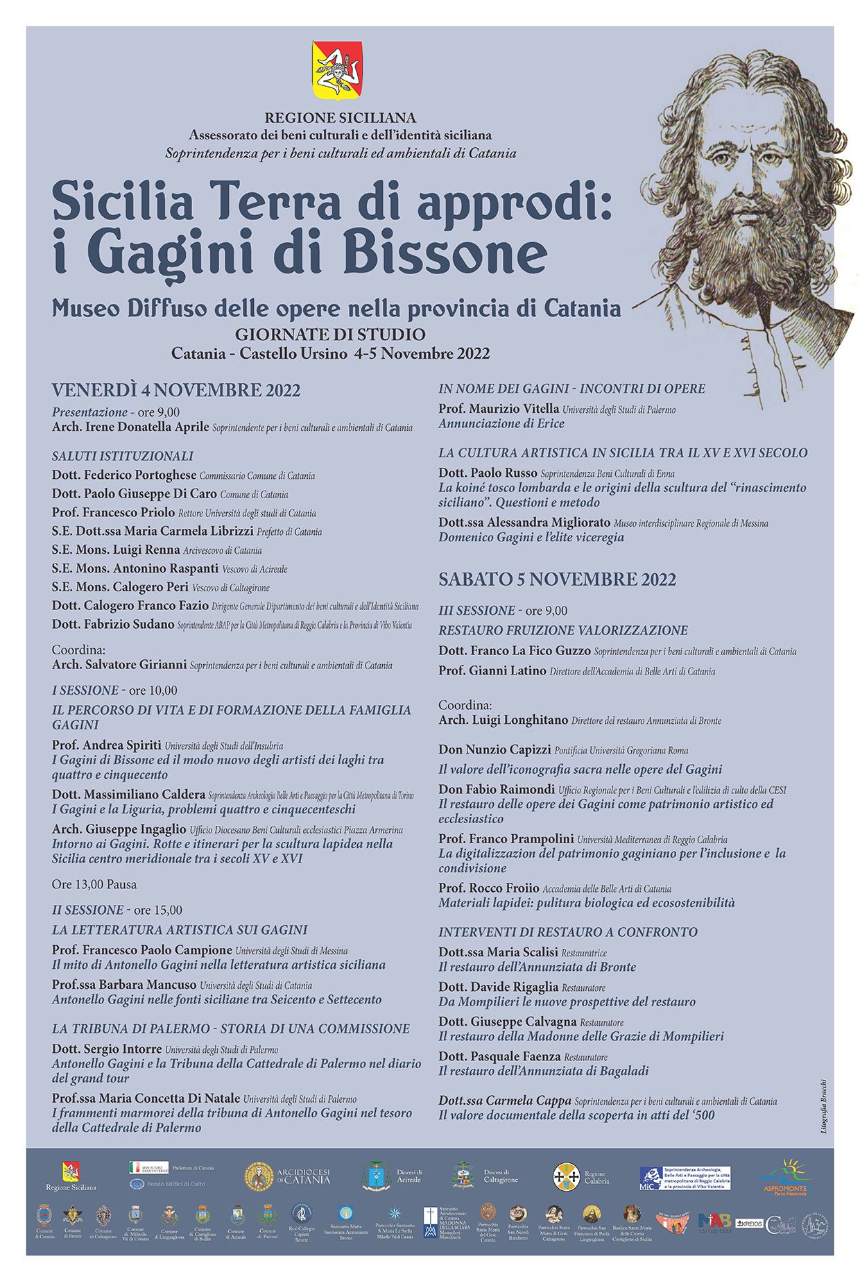 Due giornate di studio di alto valore scientifico dal titolo “Sicilia terra di approdi: i Gagini di Bissone. Il Museo diffuso in provincia di Catania“, si svolgeranno domani venerdì 4 e sabato 5 novembre, dalle ore 9, al Castello Ursino di Catania. Si chiuderà così la prima fase del progetto “Il racconto dell’arte in Sicilia terra di approdi. La presenza nella Sicilia orientale dei Gagini di Bissone e l’Umanesimo della rinascita tra il XV e XVI secolo”, ideato dalla Soprintendenza etnea, promosso e finanziato dall’assessorato regionale dei Beni culturali e dell’Identità siciliana. L’iniziativa, curata dalla soprintendente Donatella Aprile, intende promuovere la fruizione, la conoscenza e la tutela delle opere degli scultori attraverso la ricostruzione di un percorso che, dal Canton Ticino, luogo di nascita di Domenico Gagini, giunge in Sicilia dove la famiglia ebbe numerose committenze.