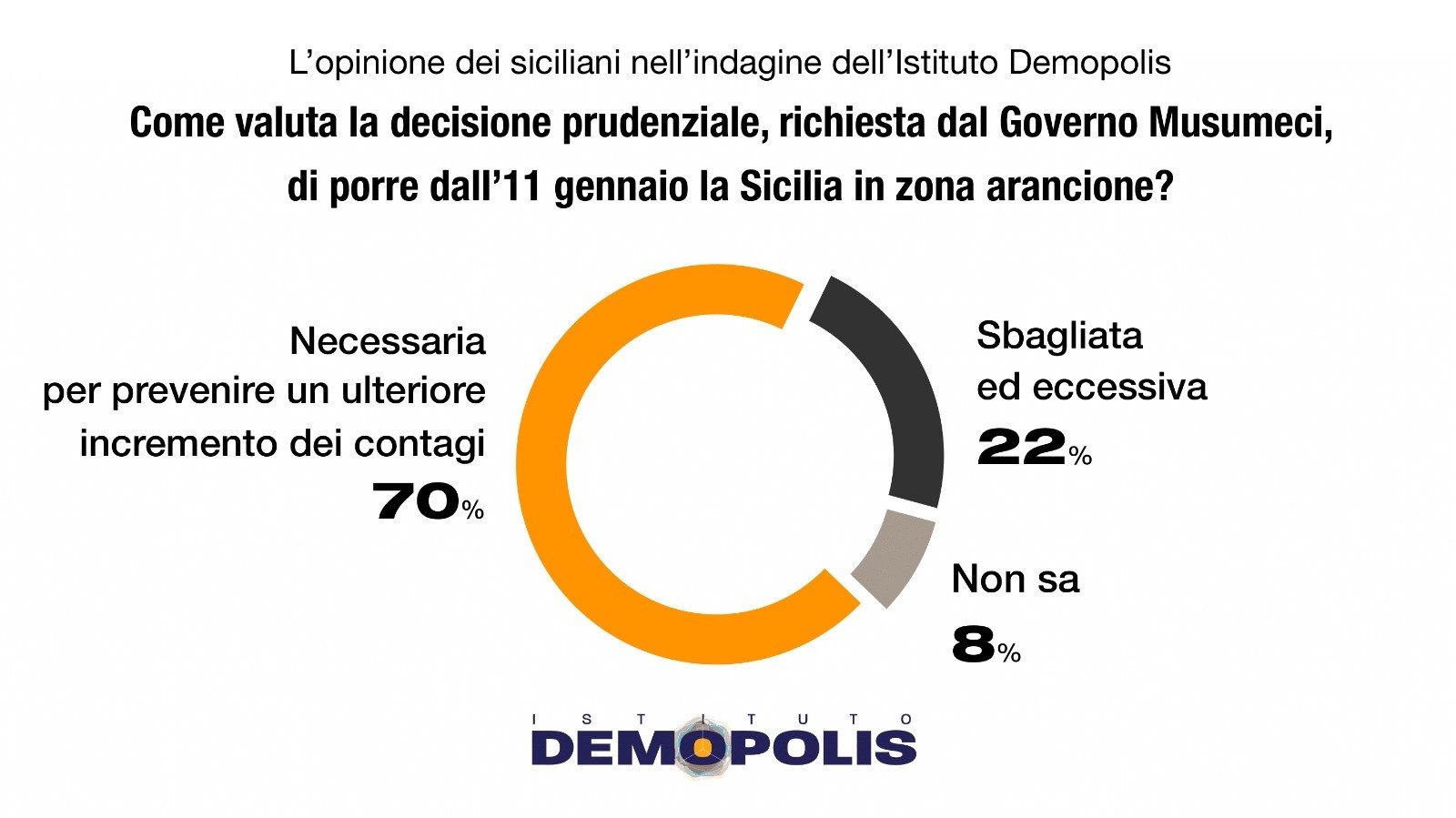 Sondaggio Demopolis sulla “zona arancione” in Sicilia, con il settanta per cento dei siciliani a favore: la soddisfazione del presidente della Regione Siciliana, Nello Musumeci. Di seguito il comunicato.