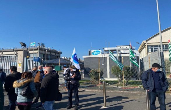 Una processione quella che sta avvenendo in questi minuti davanti allo stabilimento Pfizer alla Zona Industriale di Catania in occasione del sit-in di protesta indetto dai sindacati contro la decisione dell’azienda di licenziare 130 dipendenti.