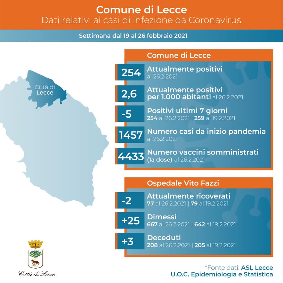 Questo è il contenuto del post pubblicato questa mattina dal primo cittadino leccese sulla situazione Covid: “I dati della settimana sulla situazione Covid confermano che il virus – nelle sue nuove varianti – ha un capacità di trasmissione ancora elevata. In Italia dal 19 al 25 febbraio sono stati registrati 103.023 casi di positività, il 25,6 per cento in più rispetto al monitoraggio settimanale di venerdì scorso. È stata stimata una prevalenza del 17,8 per cento della variante inglese sul totale dei tamponi analizzati; che, secondo l’ultimo studio realizzato dall’Istituto superiore di sanità, ha una trasmissibilità media superiore del 37 per cento rispetto ai ceppi del virus. Anche in Puglia c’è stato un aumento dei contagi negli ultimi sette giorni, del 7 per cento, come sempre articolato per province. In quella di Lecce s’è registrato una diminuzione dei casi, di circa il 6 per cento, che trova conferma anche nell’andamento della città.Quella trascorsa è stata una settimana scandita da tensioni forti per l’ordinanza di chiusura delle scuole disposta dal Presidente Emiliano e dall’assessore Lopalco.Quanto sta accadendo in Italia rende forse più comprensibile le motivazioni di un provvedimento difficile e certamente impopolare. Ieri il direttore della Prevenzione del Ministero della Salute ha detto:“il tasso di incidenza sta crescendo in età scolastica. Abbiamo una diminuzione dell’età media dei casi; cominciamo a vedere anche focolai nelle scuole e ciò potrebbe essere conseguenza delle varianti che infettano di più i bambini ma senza forme gravi. Quest’ultimo è un elemento di cui tenere conto. Non posso che esprimere preoccupazione per l’andamento dell’epidemia. Dobbiamo tenere alta la guardia e dove c’è bisogno è necessario intervenire tempestivamente e duramente. Quando si parla di chiusure scolastiche è sempre doloroso. Ma laddove ci sono dei focolai o presenza di varianti è chiaro che tale decisione dolorosa è assolutamente da considerare. Dobbiamo essere pragmatici”.Purtroppo l’andamento dell’epidemia non tiene conto della nostra progressiva insofferenza e per l’applicazione delle misure restrittive. Trascorso un anno la popolazione è stanca, il SARS coV 2 no. Chi governa ha il difficile compito di doversi misurare con queste due evidenze e gestirle. Non sempre – quasi mai – le decisioni incontrano il favore di noi cittadini sempre più comprensibilmente e giustamente fiaccati, psicologicamente ed economicamente. Ma ora che la campagna vaccinale è partita – seppure a singhiozzo – dobbiamo avere un supplemento prezioso di pazienza e resistenza. E riuscire a superare questo tornante critico prima della discesa”.
