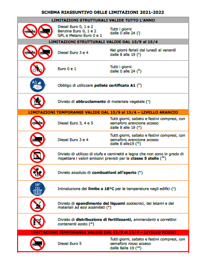 Il semaforo arancione impone il blocco dei veicoli diesel fino alla categoria euro 5 oltre al divieto di combustioni, spandimento liquami e distribuzione di fertilizzanti.