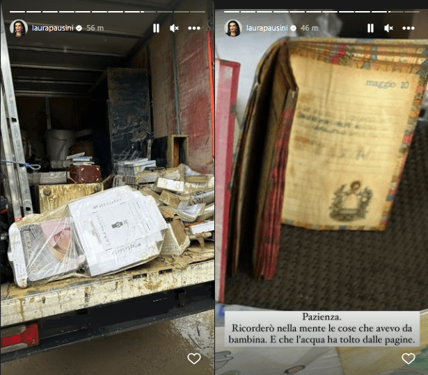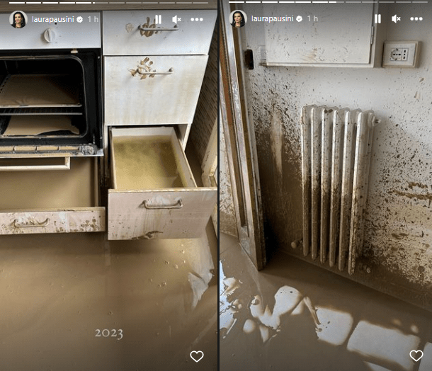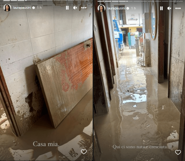 Lo racconta lei stessa su Instagram, mostra la casa dei genitori invasa dal fango.