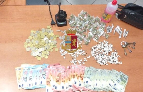 I poliziotti hanno raggiunto l’ingresso e, dopo essere entrati nell’appartamento, hanno fermato un uomo in possesso di 1.300 euro, 13 stecche di hashish di 13 grammi, 46 bustine contenenti 39 grammi di marijuana, 36 involucri con 33 grammi di eroina e 145 involucri contenenti 37 grammi di cocaina.