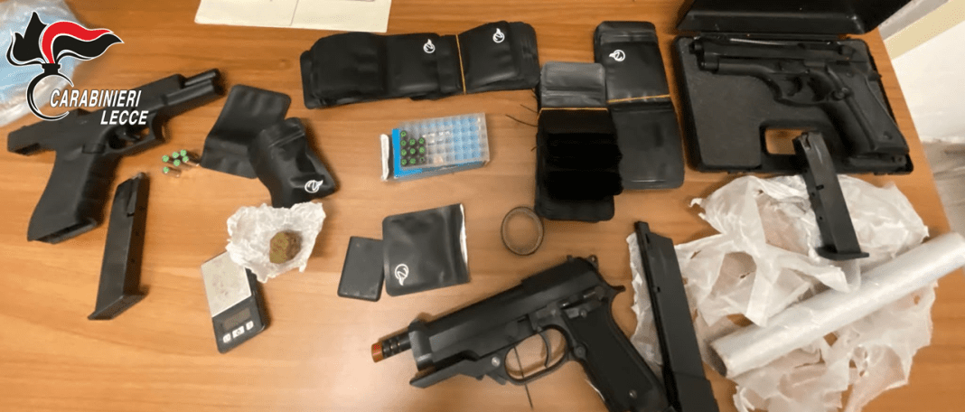 L’allarme creato dai gesti ha quindi rafforzato l’attività di repressione e contrasto da parte dei militari che, ieri sera, hanno condotto mirate perquisizioni finalizzate alla ricerca di armi e stupefacenti, nel corso delle quali sono state rinvenute due pistole a salve alterate e relativo munizionamento. Il fermato, quindi, è stato arrestato anche per spaccio nel Salento e, come disposto dal P.M. di turno presso la Procura della Repubblica dei Minori di Lecce che conduce le indagini, sottoposto alla misura cautelare personale degli arresti domiciliari.