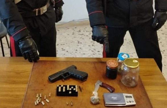 Grazie agli accertamenti successivi, l’identità del ragazzo è stata stabilita. Durante una perquisizione nella sua abitazione, i militari hanno sequestrato una pistola a salve senza tappo rosso, 29 cartucce a salve, un proiettile calibro .22 e un bossolo già esploso, oltre a circa 3,5 grammi di marijuana, materiale per confezionamento e un bilancino di precisione.