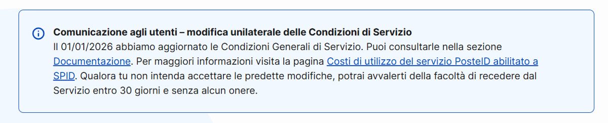 Dal 1° gennaio 2026 il servizio Spid di Poste Italiane non è più completamente gratuito. Sul sito ufficiale di Poste è stata infatti pubblicata la comunicazione di modifica unilaterale del contratto, che introduce un canone annuale per l’utilizzo dell’identità digitale.