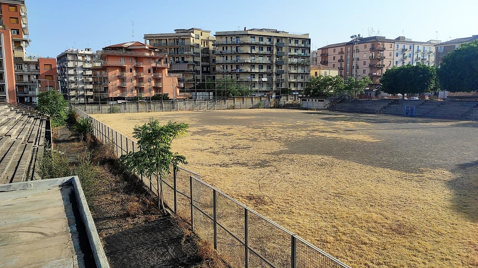 E’ in condizioni pietose, lo stadio che dovrà ospitare le partite interne dei rossazzurri che oggi pomeriggio, in casa della Vibonese, esordiranno nel primo turno della Coppia Italia di Serie C.