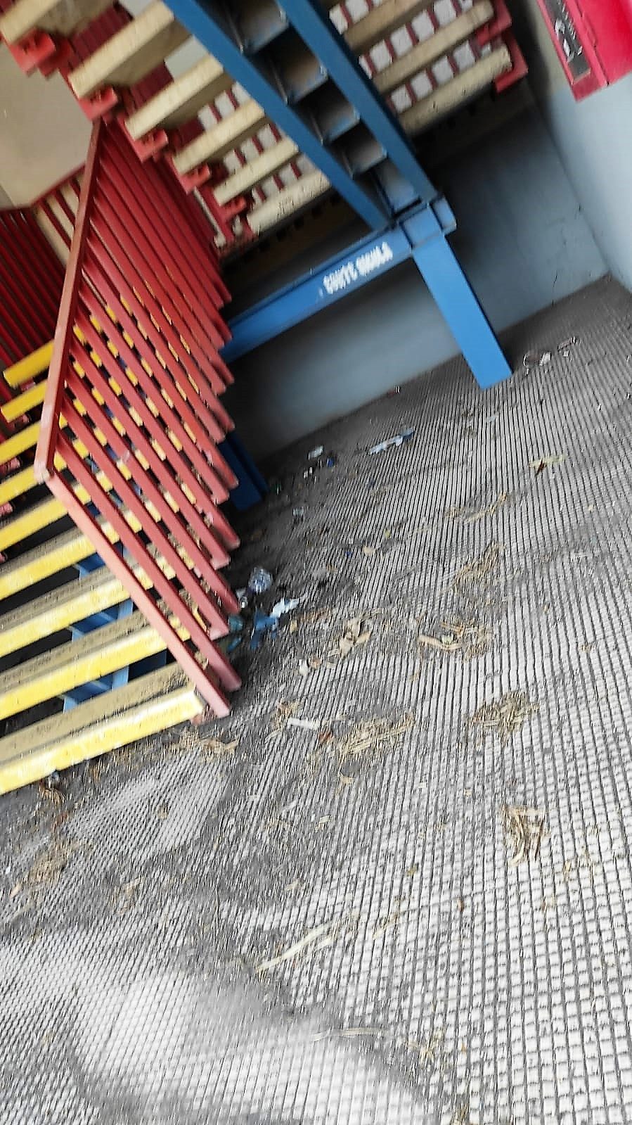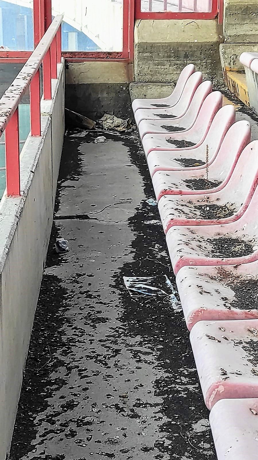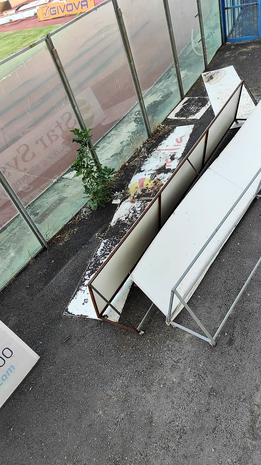 Sporcizia ovunque, che denuncia l’assenza di pulizia da tempo. Danneggiamenti mai riparati. Materiale ammassato come se ci si trovasse in una discarica. Perfino erbacce che hanno avuto il tempo di crescere spontaneamente…
