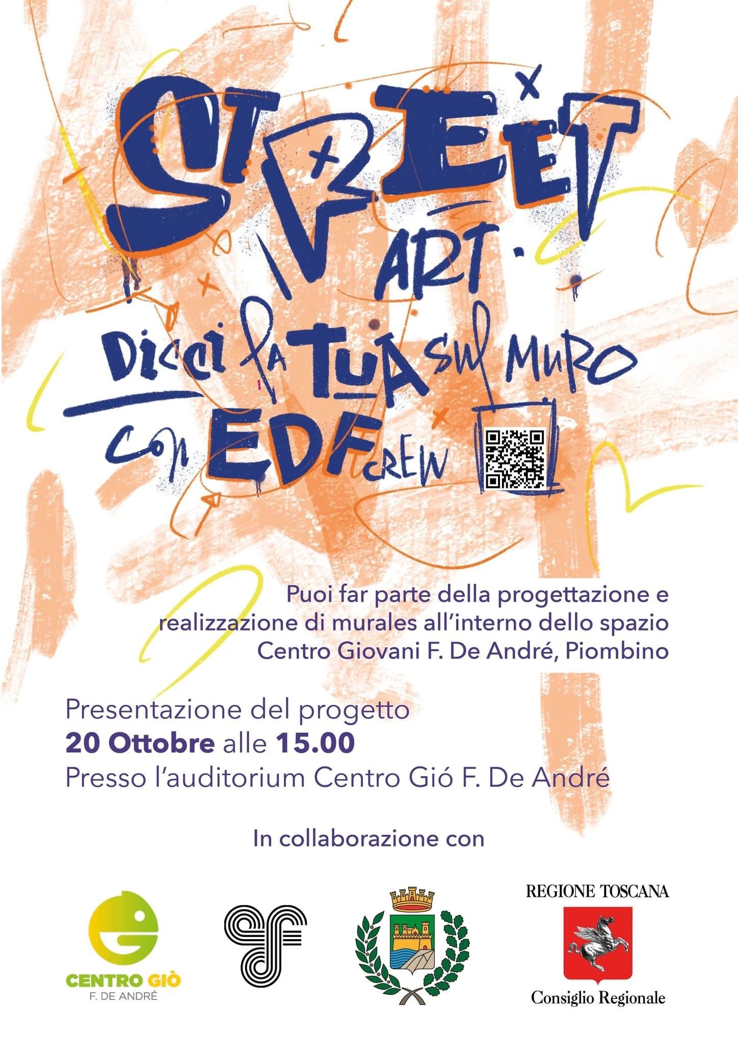La Regione Toscana ha assegnato risorse al Comune di Piombino per la valorizzazione del patrimonio urbano attraverso l’arte di strada. In collaborazione con il team creativo “Elektro Domestik Force”, il Centro giovani e i ragazzi coinvolti utilizzeranno la Street Art per valorizzare le tre pareti perimetrali della terrazza del Centro giovani. Un’importante occasione per i giovani di mettersi in gioco, di apprendere nuove tecniche espressive e mostrare i propri talenti attraverso la collaborazione e la socialità.