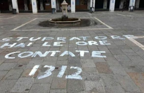 Nella notte di Halloween un uomo avrebbe stuprato una ragazzina di 17 anni nei bagni di un locale nel veneziano e un gruppo di persone non identificate ha messo nel mirino proprio il presunto stupratore. Il 5 novembre in campo San Giacometto, in zona Rialto, con la vernice bianca è stato scritto sulla strada un messaggio inequivocabile: “Stupratore hai le ore contate”. A completare la scritta c’erano anche 4 numeri, 1312, un codice che corrisponde alle lettere ACAB, acronimo di “All Cops Are Bastards”, cioè “Tutti i Poliziotti Sono Bastardi”.